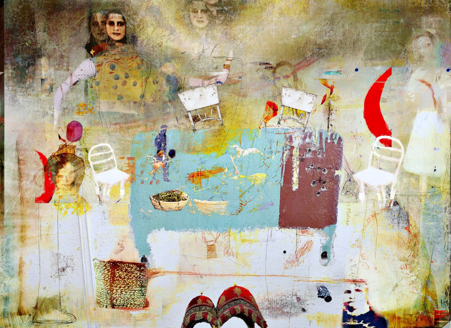 Years ago in Mexico I found an old image of a group of women posed together in their beautiful Mexican dresses. I’m not one to work much on portraits but I was compelled at this time to bring them into the project.