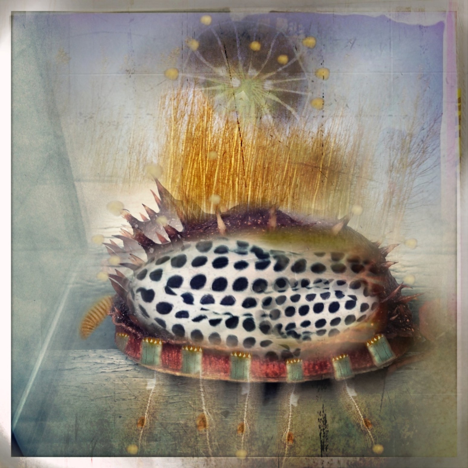 There she is in all her spotted glory…wearing the same shirt she began this journey with. It appears as if she is being served on a King’s Platter but you mustn’t underestimate her… she is really just prostrating to the situation and doing it with full reverence and playful submissiveness. I must remind you, having lived in the King’s Castle before she fully understands proper etiquete. Great activity abounds in the background as she anticipates her adventure.