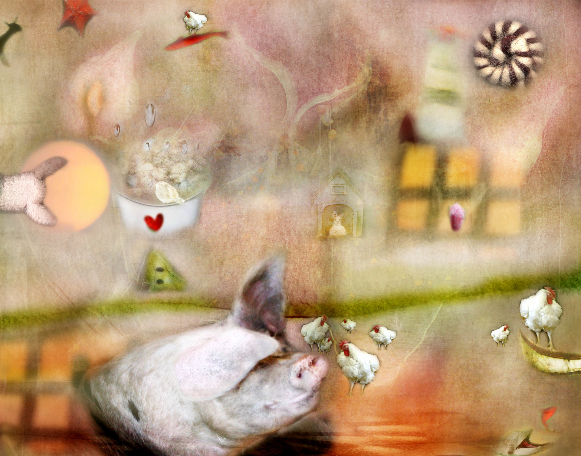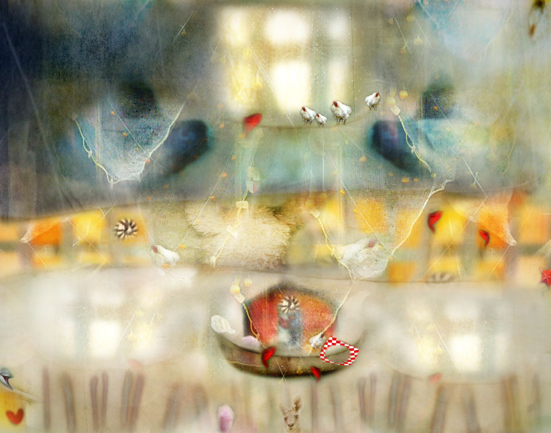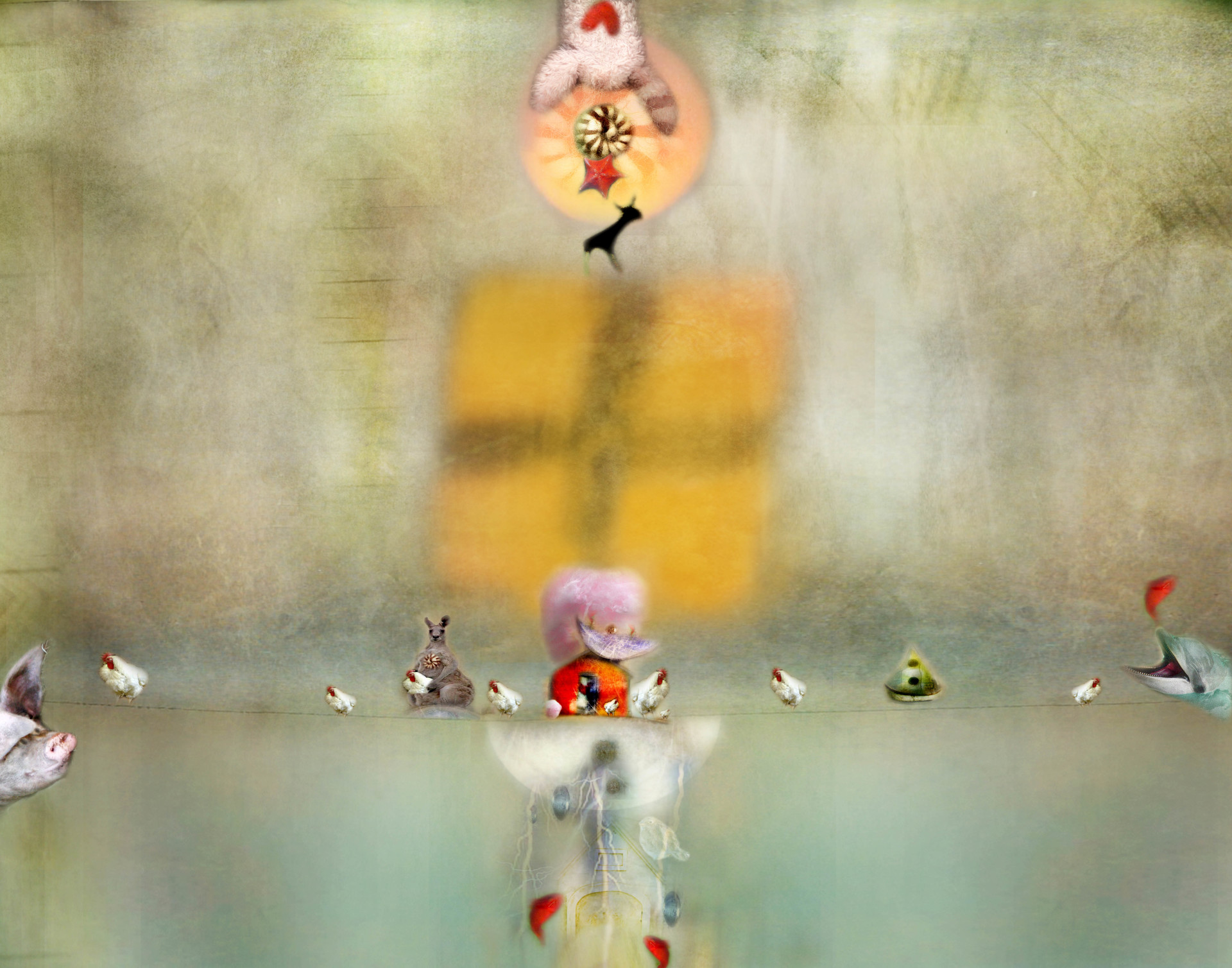 I took on the assignment of creating imagery for a children’s book. It’s not my normal way of creating work, using words and ideas of someone else. Although perhaps all personal work evolves from someone or something else you’ve seen or felt. I loved the challenge. The “book” never happened and I am left with the wonderful experience of creating something playful and whimsical that seems to appeal to both children and adults. It’s called my Not Just For Kids Series. These images were created in Photoshop using all my photos except Kanga, shot by Henry Malmgren.