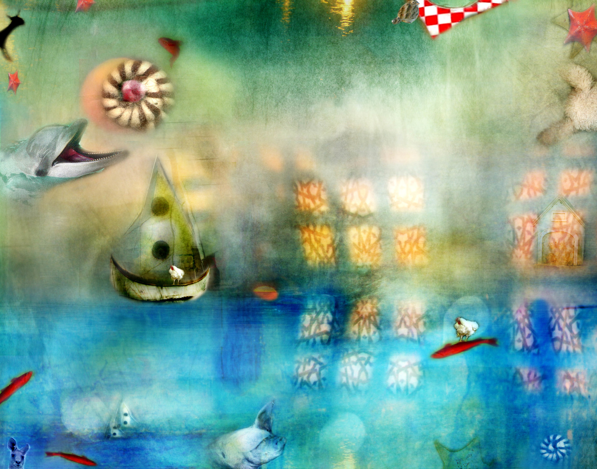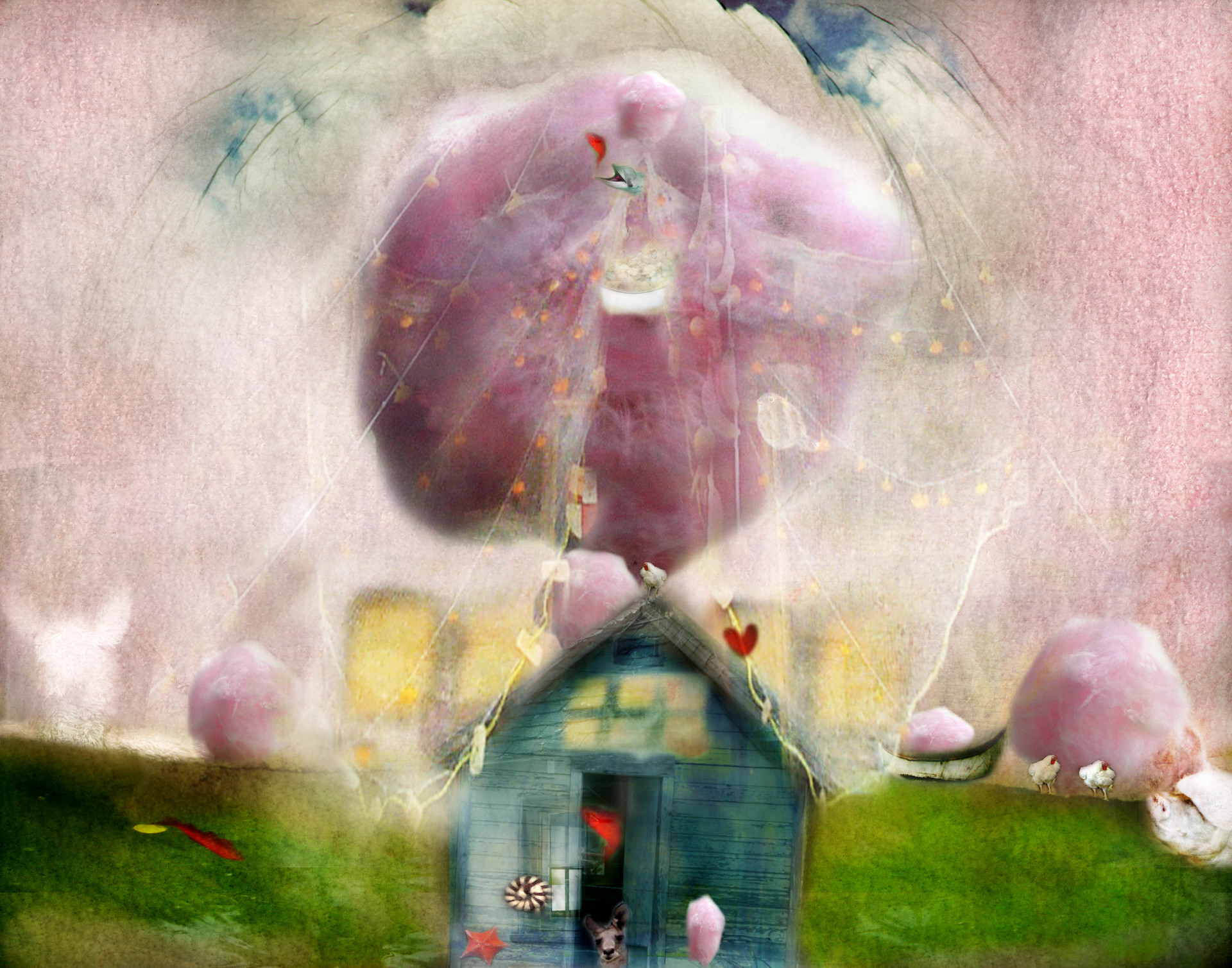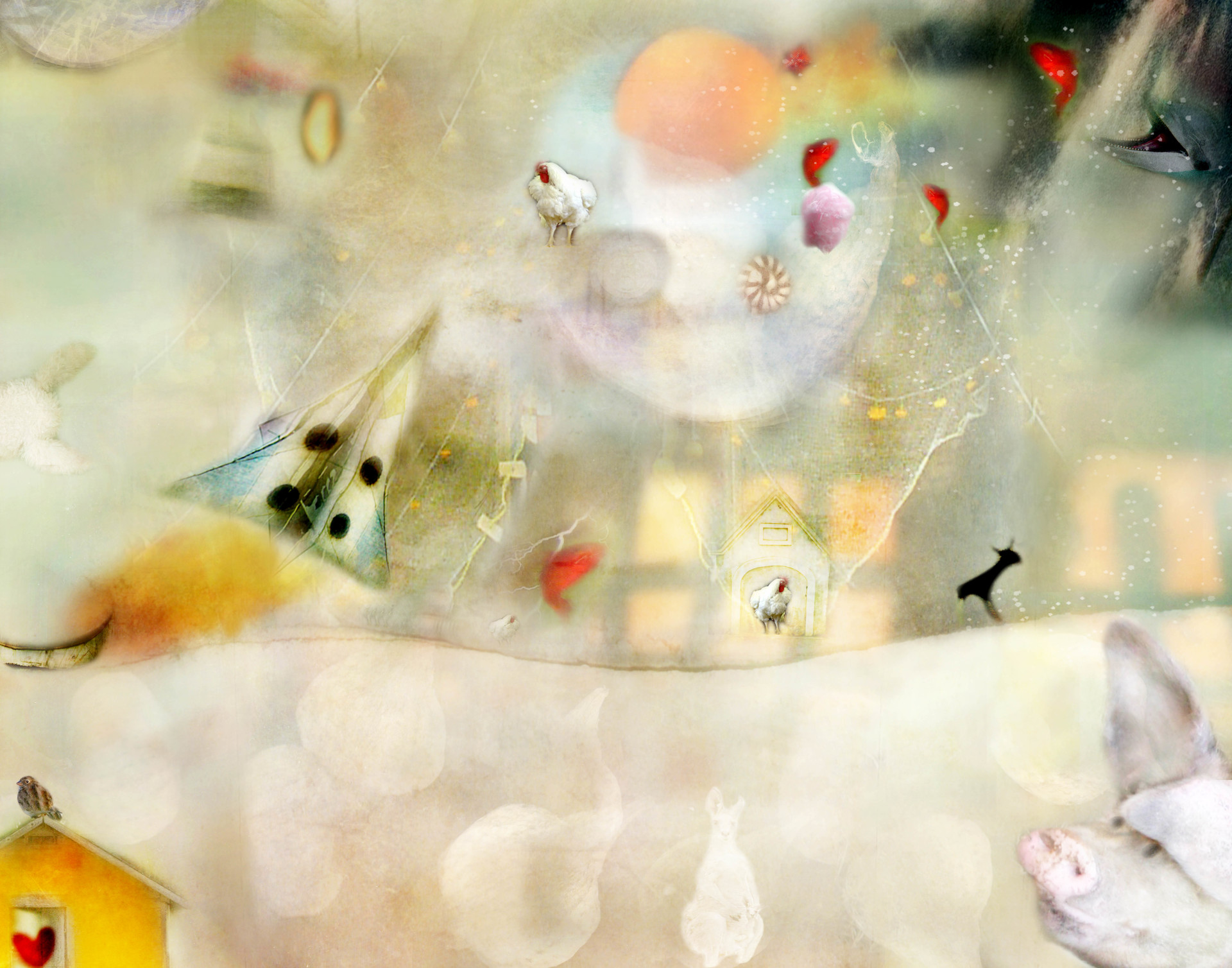 I took on the assignment of creating imagery for a children’s book. It’s not my normal way of creating work, using words and ideas of someone else. Although perhaps all personal work evolves from someone or something else you’ve seen or felt. I loved the challenge. The “book” never happened and I am left with the wonderful experience of creating something playful and whimsical that seems to appeal to both children and adults. It’s called my Not Just For Kids Series. These images were created in Photoshop using all my photos except Kanga, shot by Henry Malmgren.